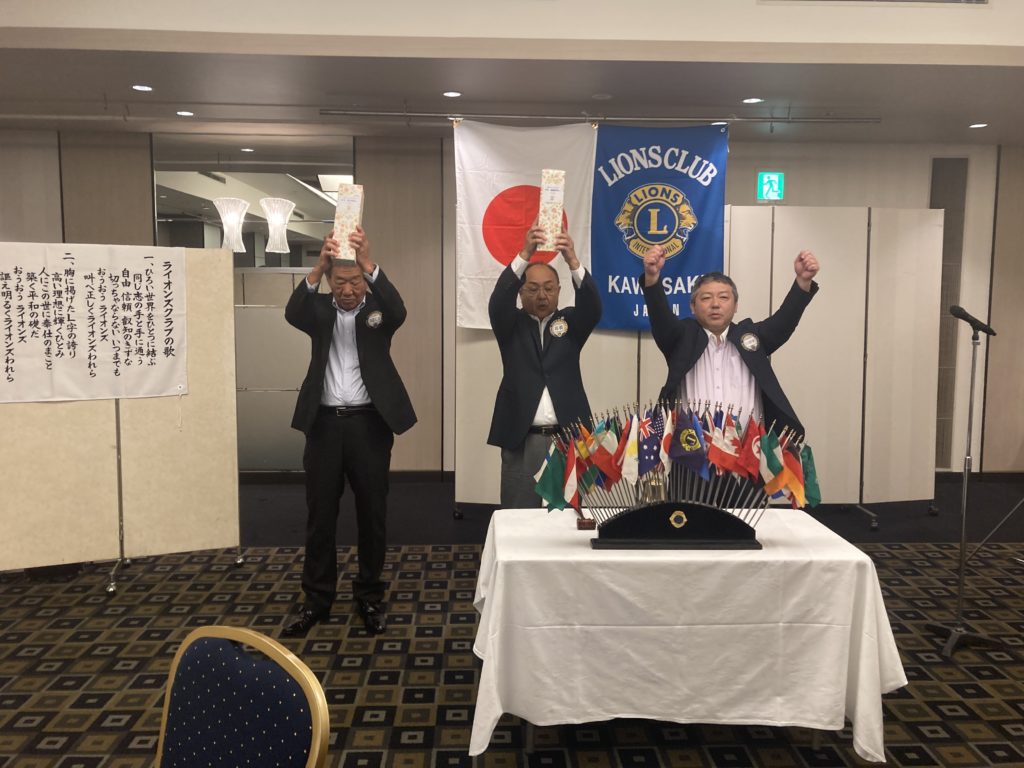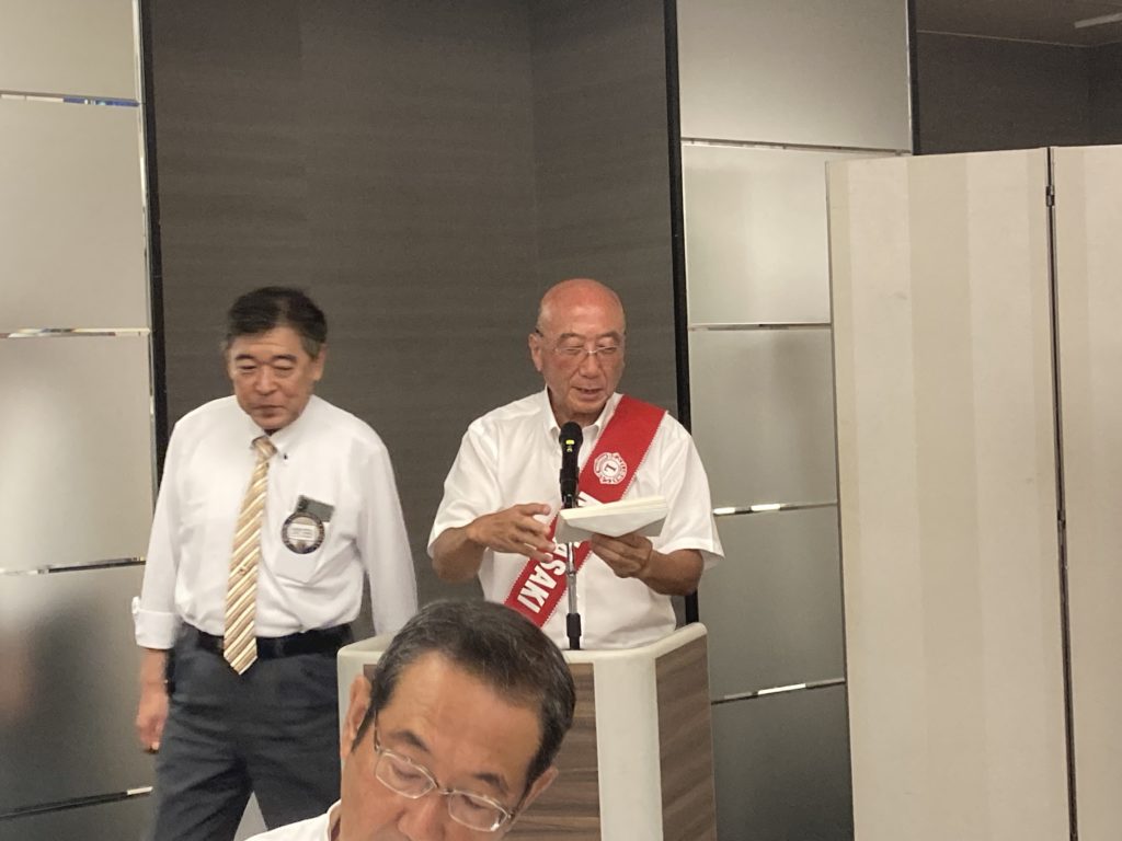 連日の酷暑の中、残念ながら出席者がいつもより少なくはありましたが、例会では高橋 信司L、関口 晴雄Lのお誕生日のお祝いを行いました。乾杯のご挨拶をは高橋 信司L、ライオンズロアを大川原 久Lが務められ、終始和やかな例会となりました。